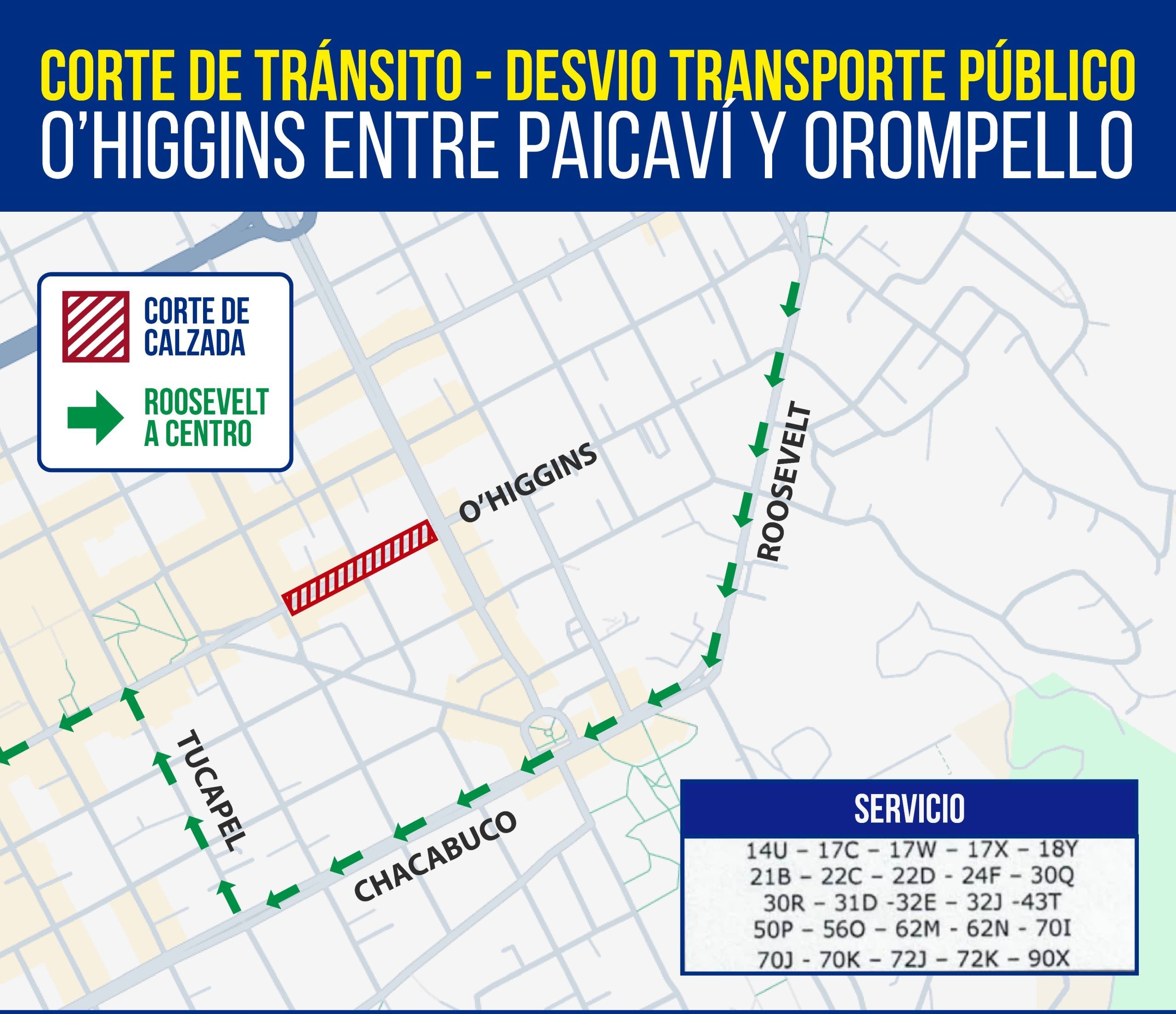 “Es un corte no menor, ya que la calle O’Higgins siempre es muy transitada”, comentó. Es por esto que se optará por un cambio de rutas del transporte público.