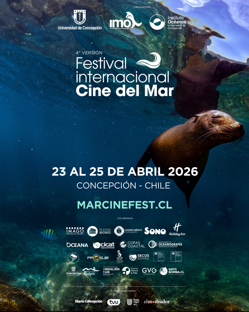 La realización del 4to Festival Internacional de Cine del Mar (Marcinefest 2026) es posible gracias a una alianza estratégica liderada por el Instituto Océanos de la Universidad de Concepción y el Instituto Milenio de Oceanografía (IMO). Colaboran: Dirección de Extensión UdeC, Oceana, Fundación Ciencia & Vida, IMAGO, Colegio Médico, Sono, Municipalidad de Concepción, Teatro Biobío, Holiday inn, COPAS, SECOS, INCAR, Facultad de Ciencias Naturales y Oceanográficas, además de los media partners: Medios UdeCy El Mostrador.