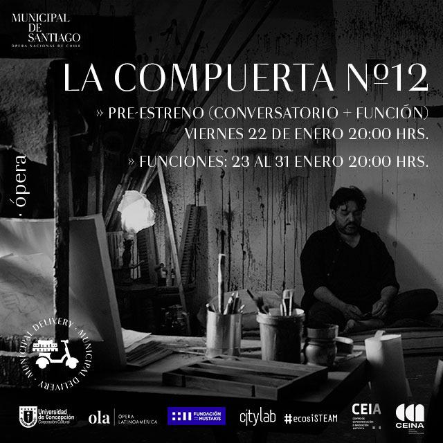 «La compuerta Nº12», ópera-monodrama digital de composición y libreto de Miguel Farías y dirección de escena y cine de la chilena Christine Hucke, se estrenará el 22 de enero del 2021 por la plataforma digital Municipal Delivery. La ópera está basada en una historia de Baldomero Lillo incluida en el libro “Sub-Terra”, cuentista y maestro del realismo social chileno.