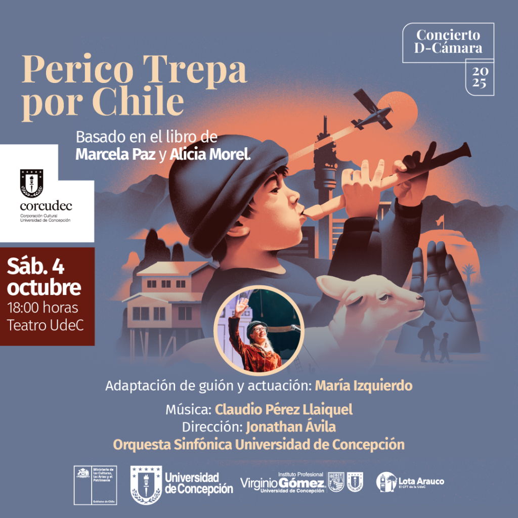 La Corporación Cultural de la Universidad de Concepción invita al concierto Perico trepa por Chile, una obra familiar basada en el clásico de la literatura infantil chilena de Marcela Paz y Alicia Morel.