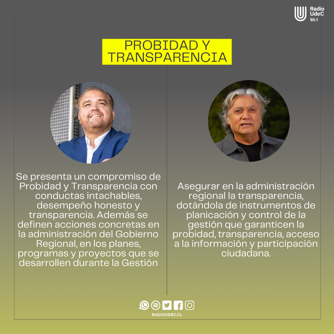 Tanto Giacaman como Navarro han publicado un programa de propuestas y medidas a implementar su eventual periodo en la Gobernación Regional, priorizando temas como Probidad, Seguridad e Infraestructura.