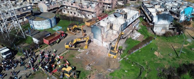 Comenzó la demolición del conjunto Ríos de Chile en Lirquén y gobierno compromete solución para 850 familias en el sector