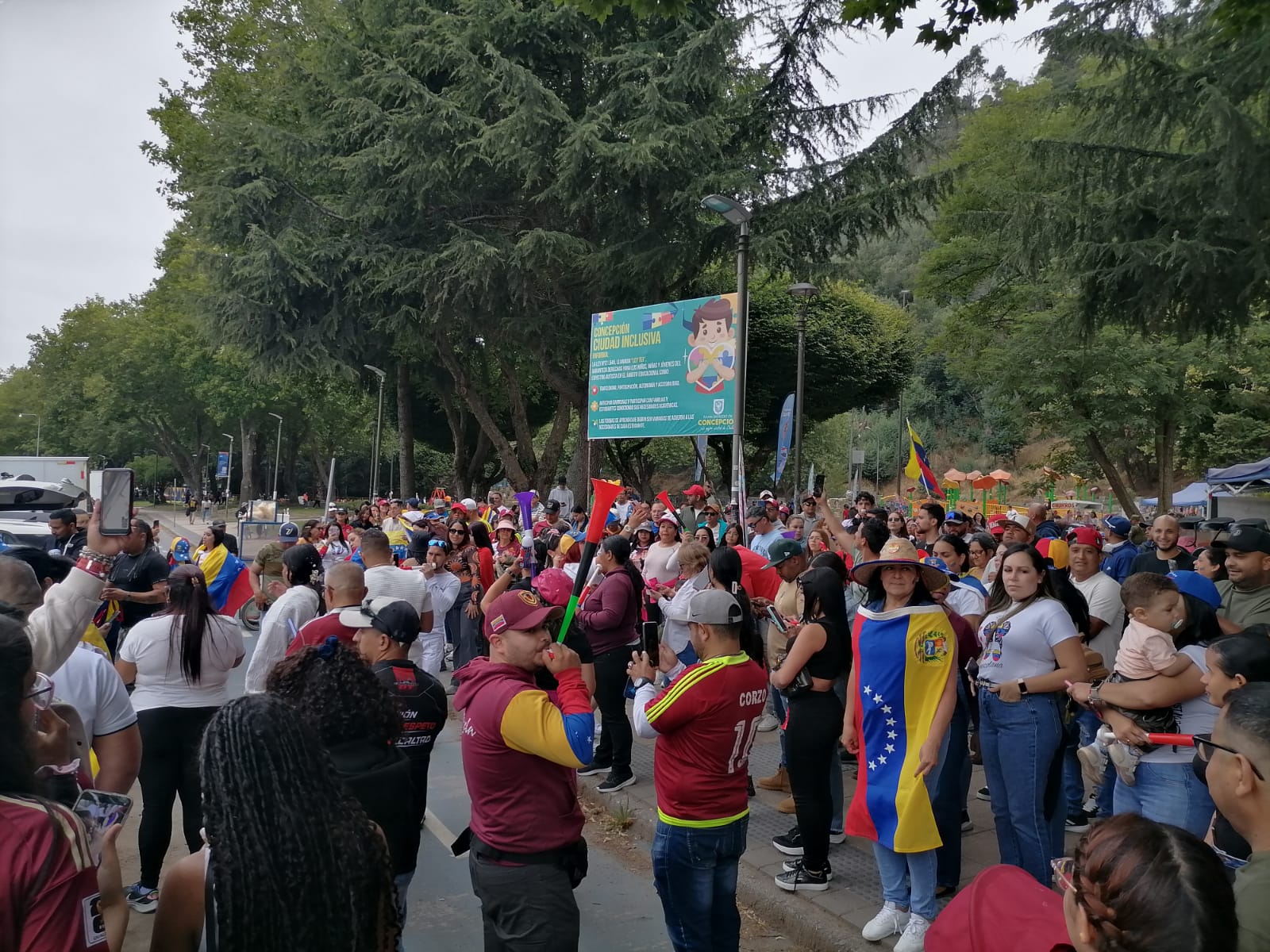 La tarde del sábado, mientras Caracas se encontraba en completo silencio, en el Parque Ecuador de Concepción había música, abrazos, banderas y personas vistiendo la camiseta de la “vinotinto”. Era la respuesta a la convocatoria realizada por la Organización de Venezolanos en la Región del Biobío (Orve), para festejar una nueva etapa, que llegaba con la captura de Nicolás Maduro, y su esposa Cilia Flores, por parte de las fuerzas estadounidenses.
